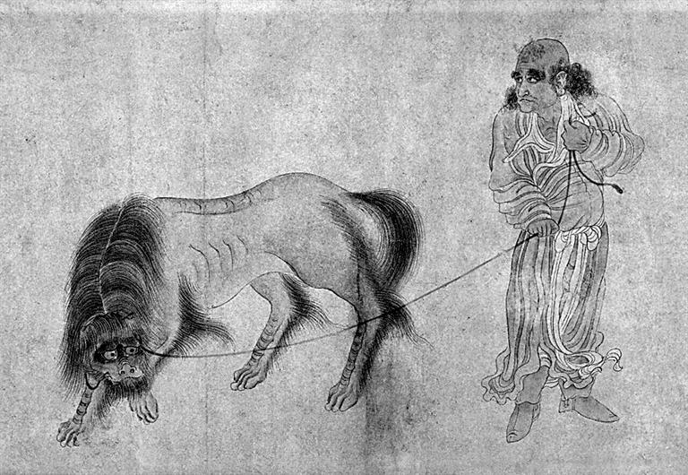 当时,由于凶猛的外形,狮子被人们视为“殊方异物”,并没有被大众所接受。人们对狮子的喜爱,一般认为与佛教的传播有关。在佛教中,威武勇猛的百兽之王狮子有着极其重要的地位,被视为尊贵之物。文殊菩萨的坐骑便是一头青色的狮子。而讲授佛经被称作是“狮子吼”。苏轼因此还戏谑地创造了“河东狮吼”一词。